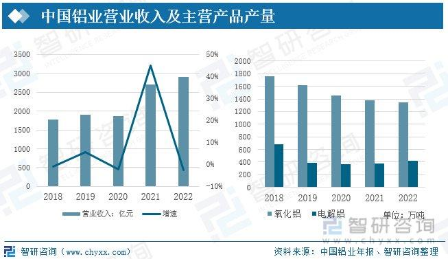 中國鋁業(yè)集團有限公司是中國鋁行業(yè)中唯一集鋁土礦勘探、開(kāi)采,氧化鋁、原鋁和鋁加工生產(chǎn)、銷(xiāo)售,技術(shù)研發(fā)為一體的大型鋁生產(chǎn)經(jīng)營(yíng)企業(yè),是中國最大的氧化鋁、原鋁和鋁加工材生產(chǎn)商,是全球第二大氧化鋁生產(chǎn)商、第三大原鋁生產(chǎn)商。2021年,受鋁價(jià)格上升的影響,中國鋁業(yè)營(yíng)業(yè)收入實(shí)現大幅增長(cháng),2021年營(yíng)業(yè)收入為2988億元,較上年同期同比增加60.65%,2022年中國鋁業(yè)營(yíng)業(yè)收入為2909億元,較上年減少80億元,同比減少2.64%。受鋁價(jià)格上升的影響,近年來(lái)中國鋁業(yè)主營(yíng)產(chǎn)品氧化鋁與電解鋁的產(chǎn)量都呈現出下降的趨勢,2022年氧化鋁的生產(chǎn)產(chǎn)量為1351萬(wàn)噸,較上年減少30萬(wàn)噸,電解鋁產(chǎn)量略有增加電解鋁產(chǎn)量為417萬(wàn)噸,較上年同期同比增加10.03%。