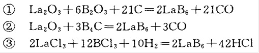 適用于CVD法生產(chǎn)LaB6的化學(xué)反應式有: