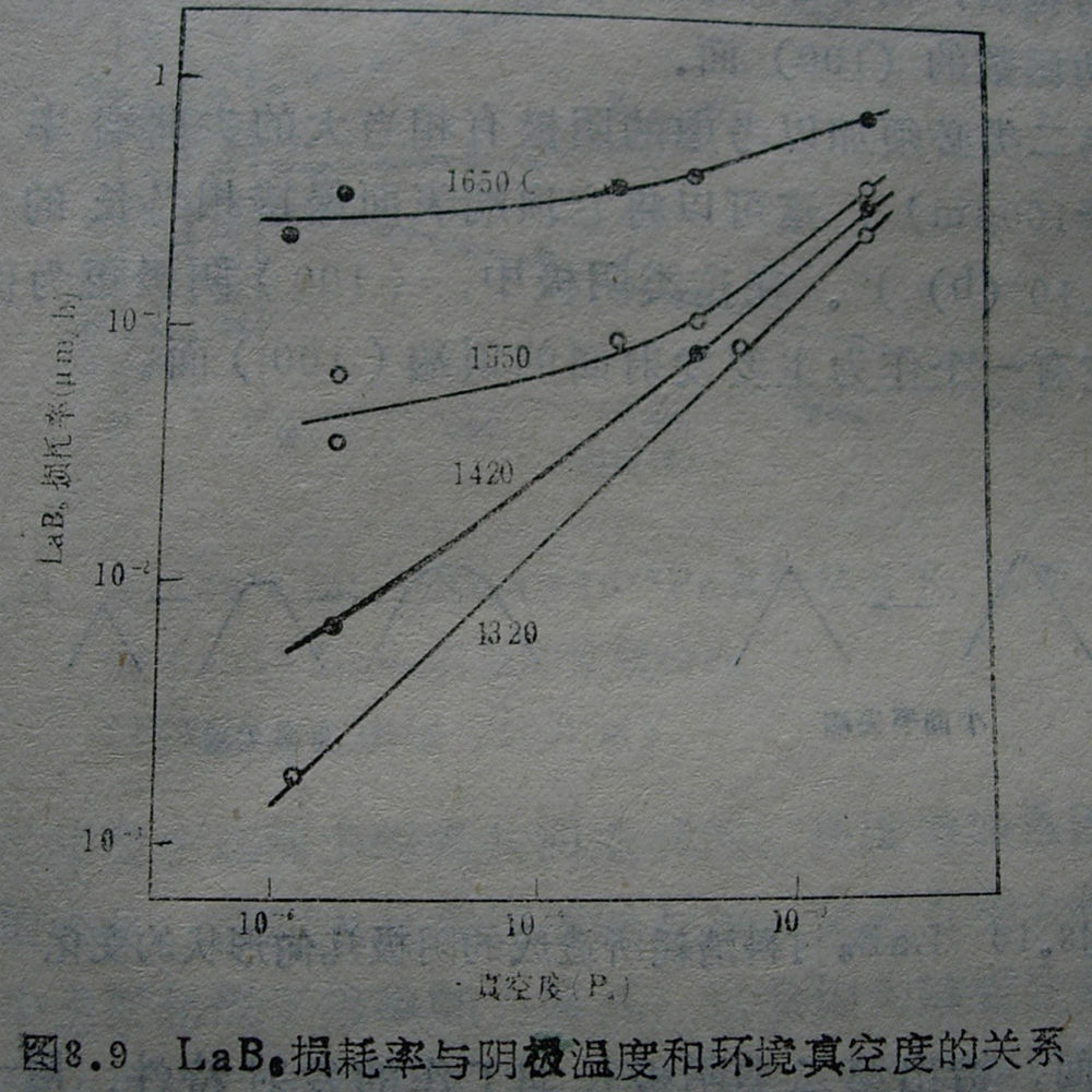 ?。ㄈ勖卣?br /> LaB6陰極的壽命特征,即長(cháng)期工作的發(fā)射性能主要由LaB6材料的消耗所決定。LaB6的消耗量是由于材料的熱蒸發(fā)所致,隨著(zhù)溫度的升高和真空度的變壞,消耗量增大。