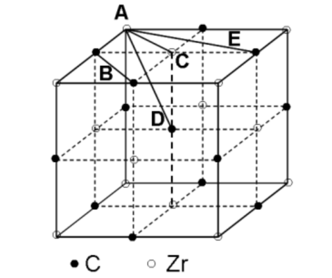 下圖是ZrC的晶體結構(面心立方晶體結構),Zr原子組成立方晶格,C原子位于晶格的八面體間隙位置。在碳-鋯化學(xué)反應系統中存在很寬范圍的非化學(xué)計量現象,即ZrCx(0.5≤x≤1)。因此碳化鋯(ZrC)是一種非化學(xué)計量間隙化合物,ZrC陶瓷材料中普遍存在著(zhù)碳空位。