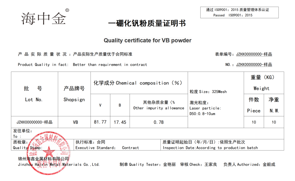 產(chǎn)品名稱(chēng):一硼化釩(VB)