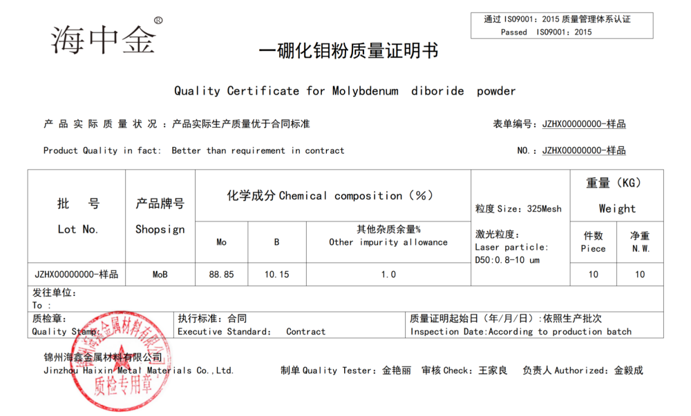 性質(zhì):硼化鉬具有很高的硬度和較低的相對摩擦系數,化學(xué)穩定性,耐腐蝕,抗損等特性。