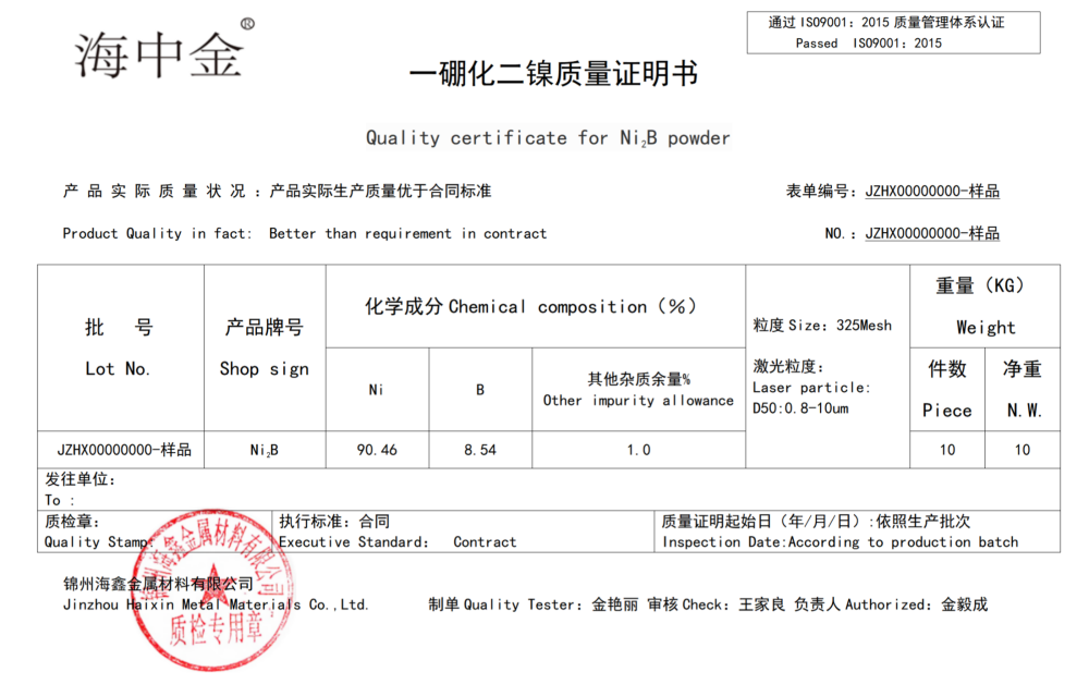 產(chǎn)品名稱(chēng):一硼化二鎳(Ni2B)