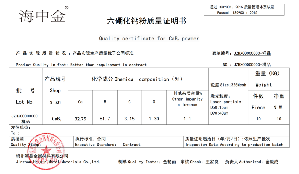 產(chǎn)品名稱(chēng):六硼化鈣(CaB6)