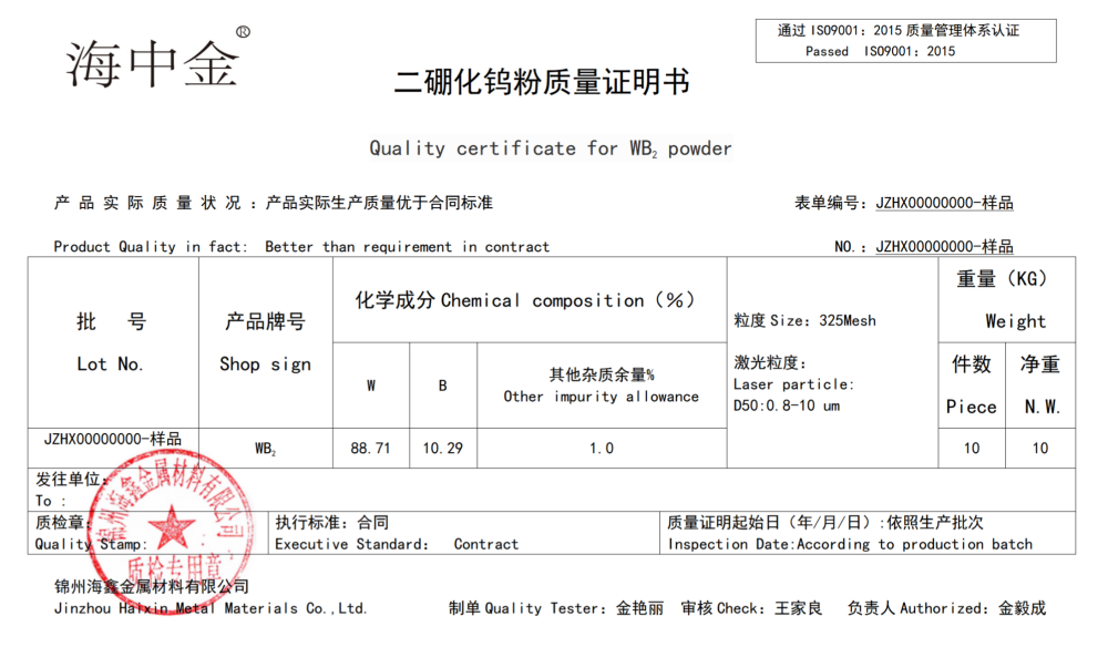 產(chǎn)品名稱(chēng):二硼化鎢(WB2)