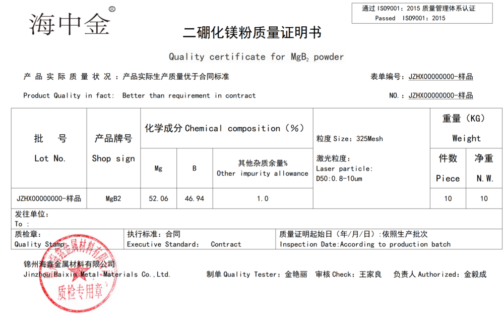 產(chǎn)品名稱(chēng):二硼化鎂(MgB2)