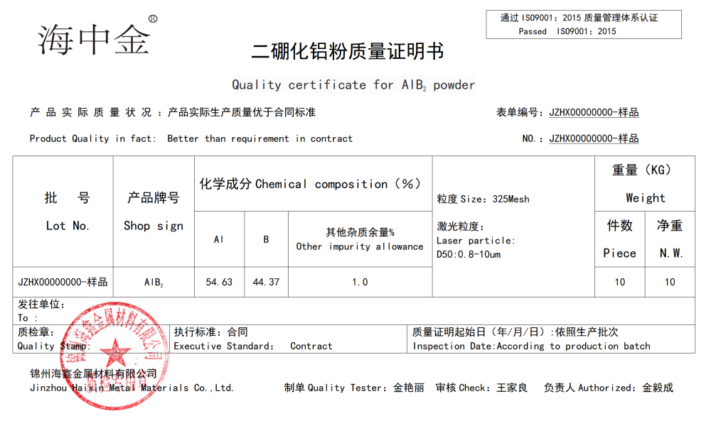 產(chǎn)品名稱(chēng):二硼化鋁(AlB2)
