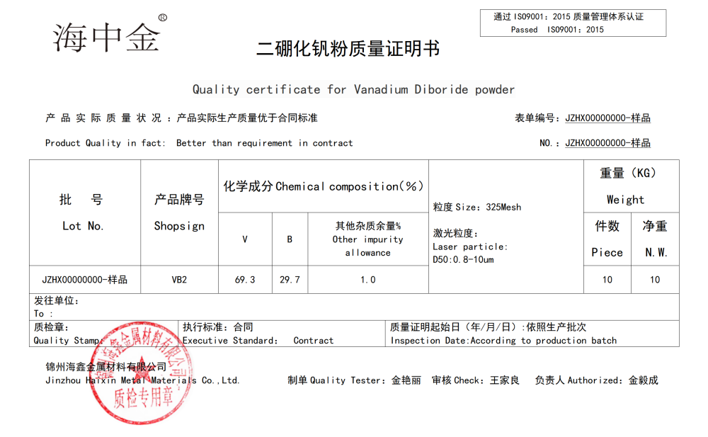 產(chǎn)品名稱(chēng):二硼化釩(VB2)