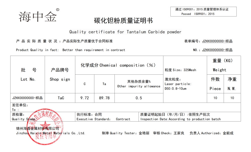 產(chǎn)品名稱(chēng):碳化鉭(TaC)