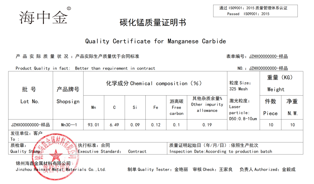 產(chǎn)品名稱(chēng):碳錳合金(Mn3C)