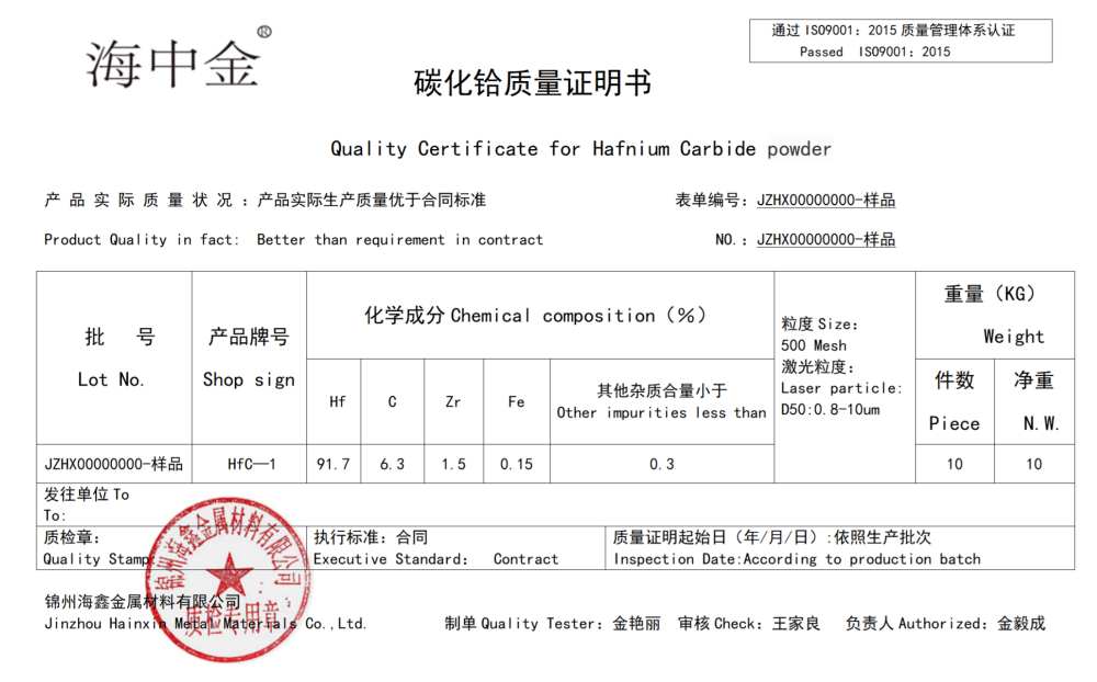 產(chǎn)品名稱(chēng):碳化鉿(HfC)