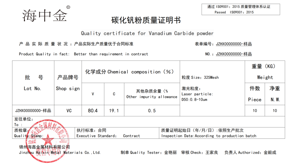 產(chǎn)品名稱(chēng):碳化釩(VC)