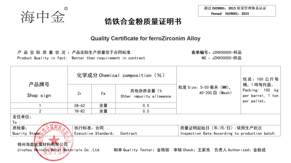 產(chǎn)品名稱(chēng):鋯鐵(ZrFe)