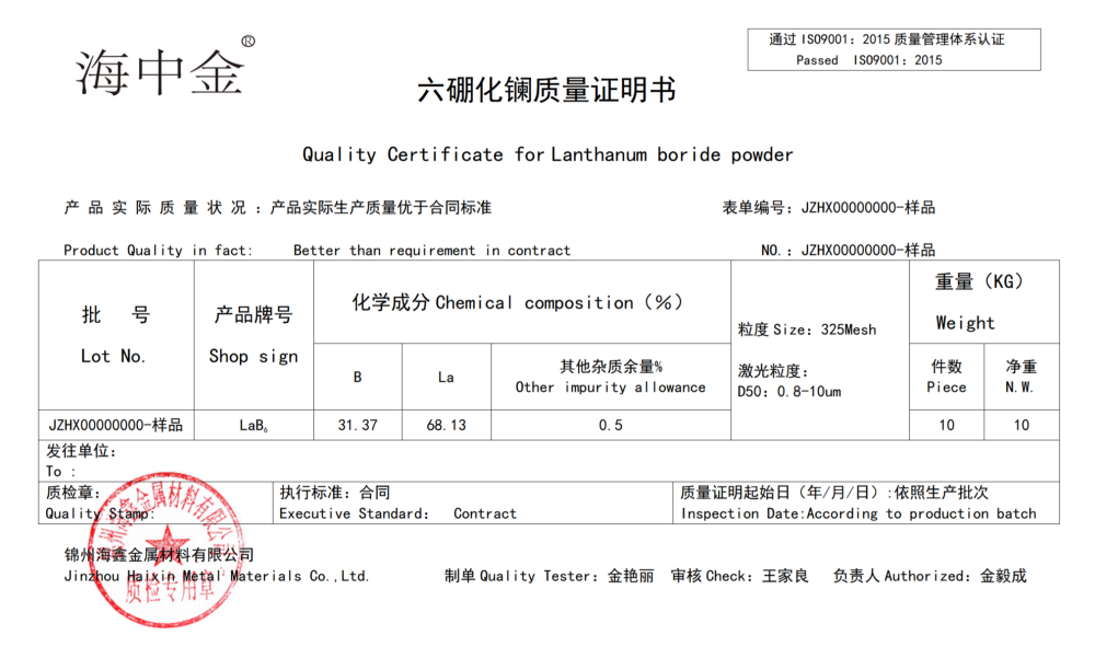 產(chǎn)品名稱(chēng):六硼化鑭(LaB6)
