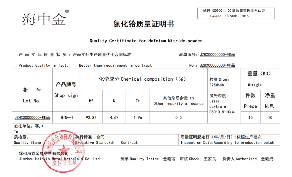 產(chǎn)品名稱(chēng):氮化鉿(HfN)