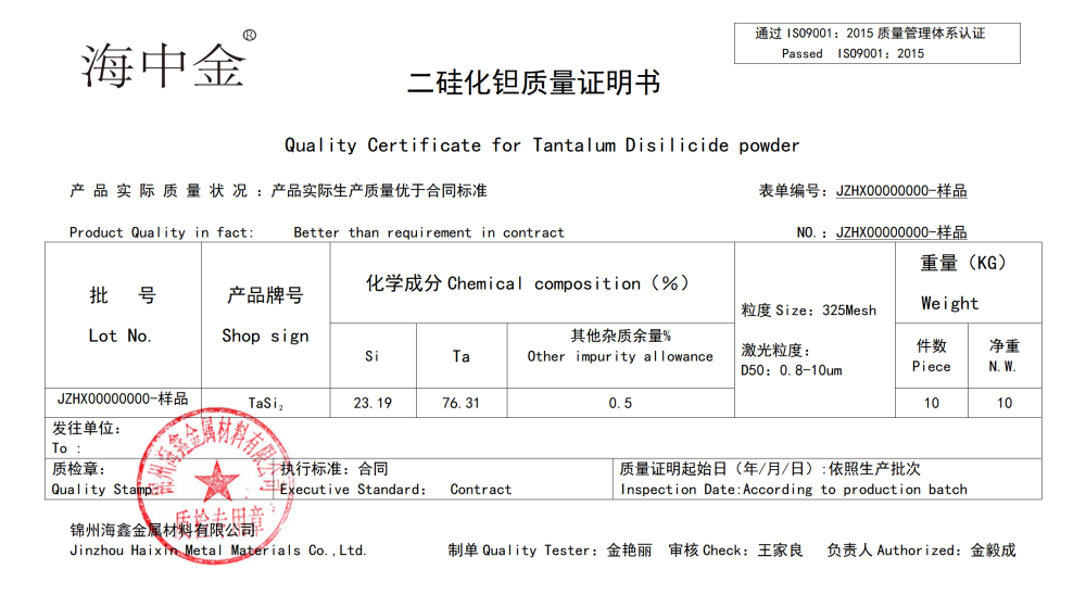 產(chǎn)品名稱(chēng):二硅化鉭(TaSi2)