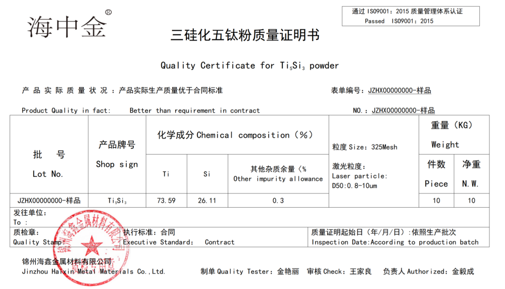 產(chǎn)品名稱(chēng):三硅化五鈦(Ti5Si3)