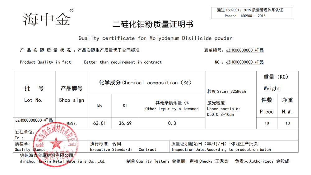 產(chǎn)品名稱(chēng):二硅化鉬(MoSi2)