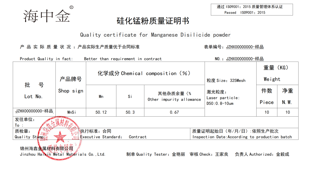 產(chǎn)品名稱(chēng):二硅化錳(MnSi2)