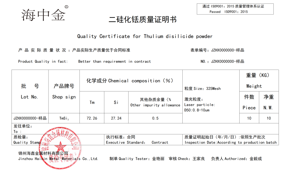 產(chǎn)品名稱(chēng):二硅化銩(TmSi2)