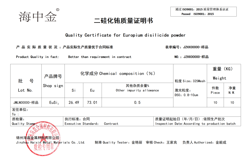 產(chǎn)品名稱(chēng):二硅化銪(EuSi2)